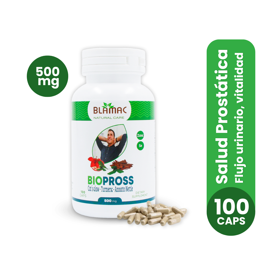 Biopross se destaca por su fórmula completamente natural, desarrollada para combatir los problemas comunes asociados con el agrandamiento de la próstata y la disfunción sexual. Cada cápsula está formulada con ingredientes de alta calidad que actúan sin efectos secundarios, ofreciendo una solución efectiva y segura para hombres que buscan mejorar su salud prostática. Certificado por DIGESA, Biopross garantiza seguridad y eficacia en cada dosis.